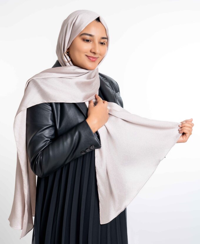 The non-slip hijab is perfect for special occasions. With its textured, light crinkle feel, non-slip matte underside, and elegant shine, this premium-quality fabric offers a secure yet flowy drape.