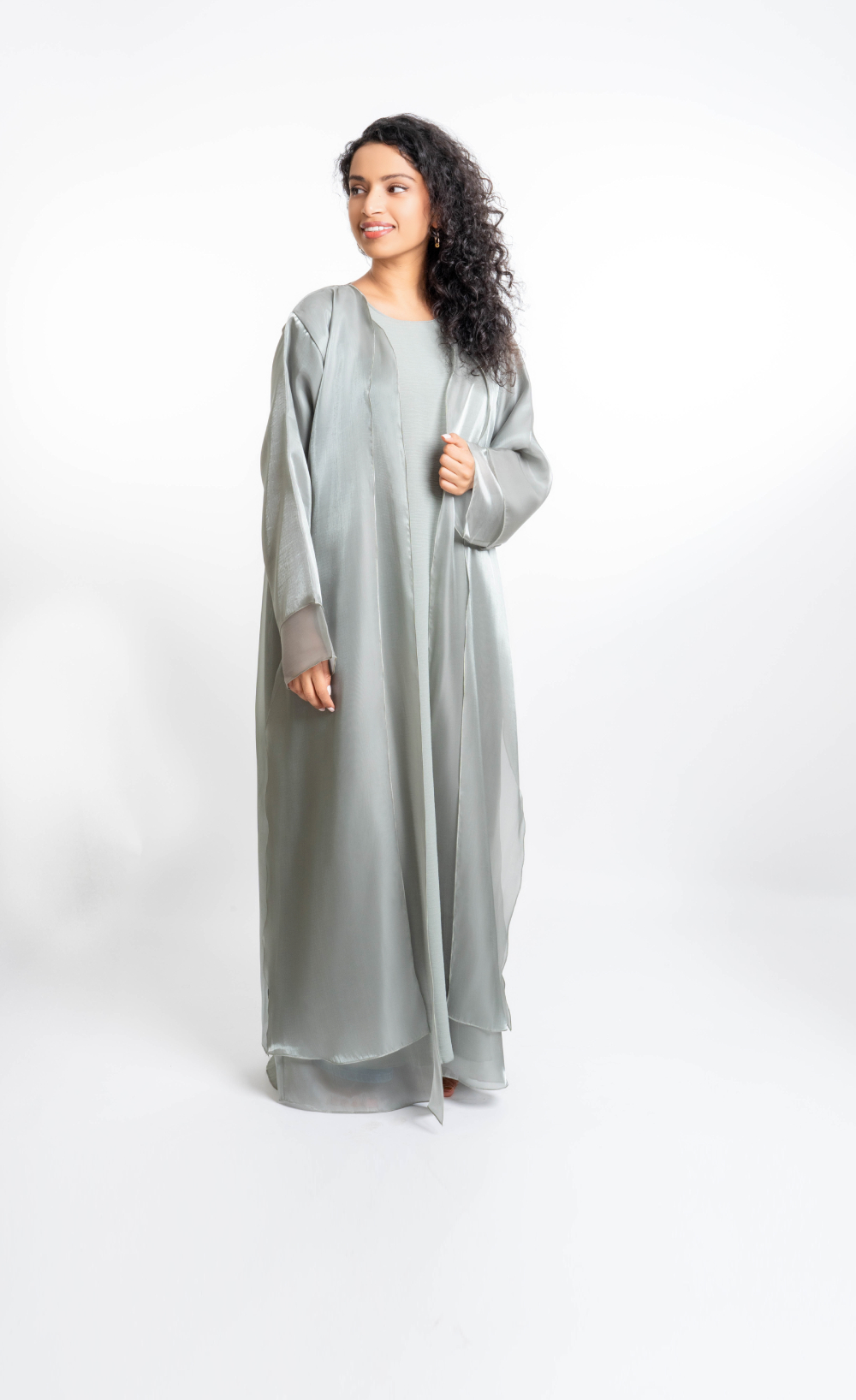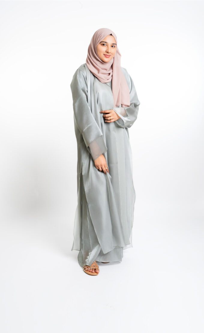 Introducing our elegant organza abaya, designed to bring a touch of effortless grace to your wardrobe. This beautiful piece features a lightweight, flowy organza abaya jacket that moves beautifully, creating a dreamy silhouette.
