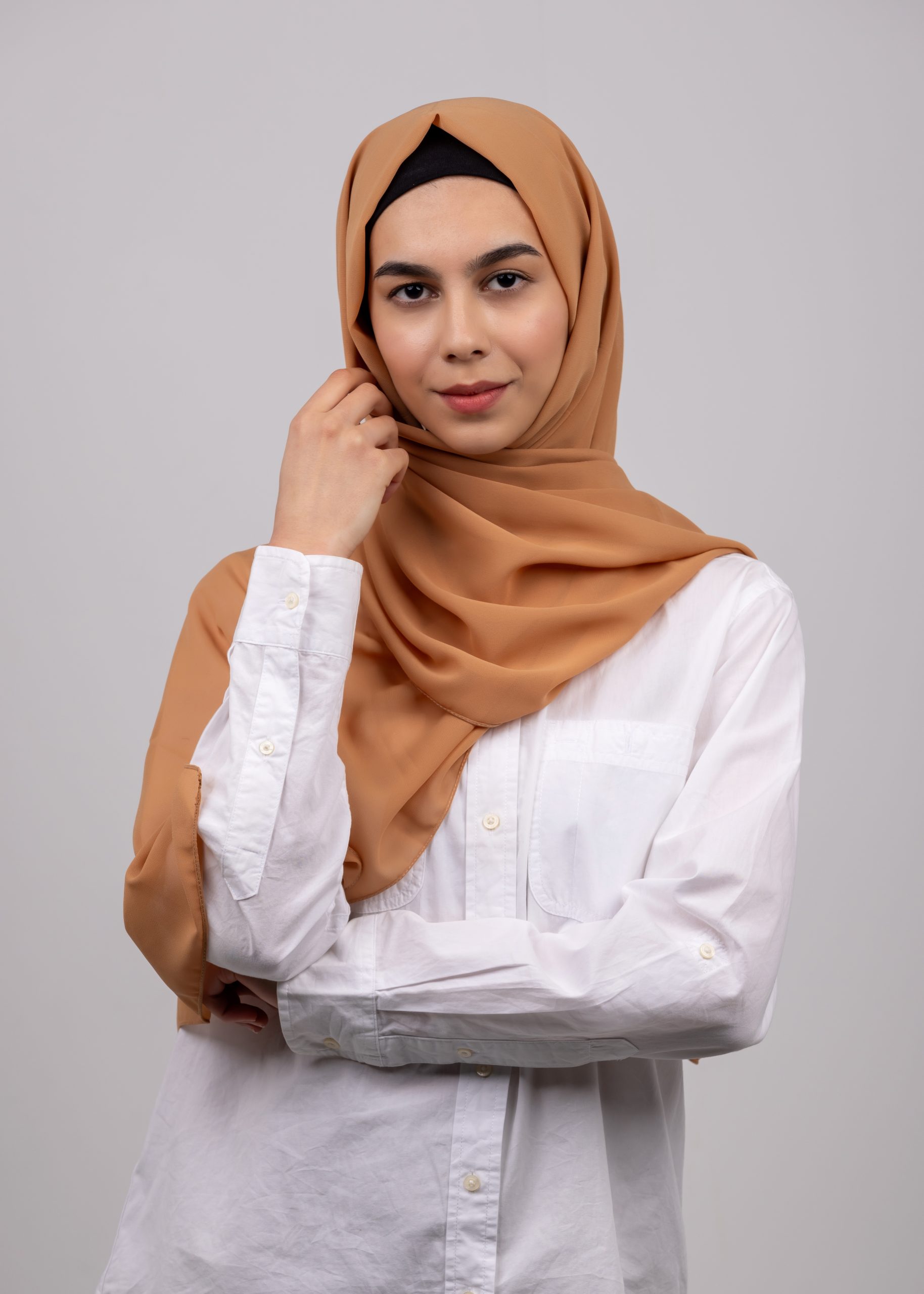 The soft chiffon hijab is great for everyday casual wear. Designed for comfort and versatility, the yarns used for this fabric make it low-crease, flowy, and effortlessly stylish for any occasion. Your go-to for graceful, hassle-free wear.