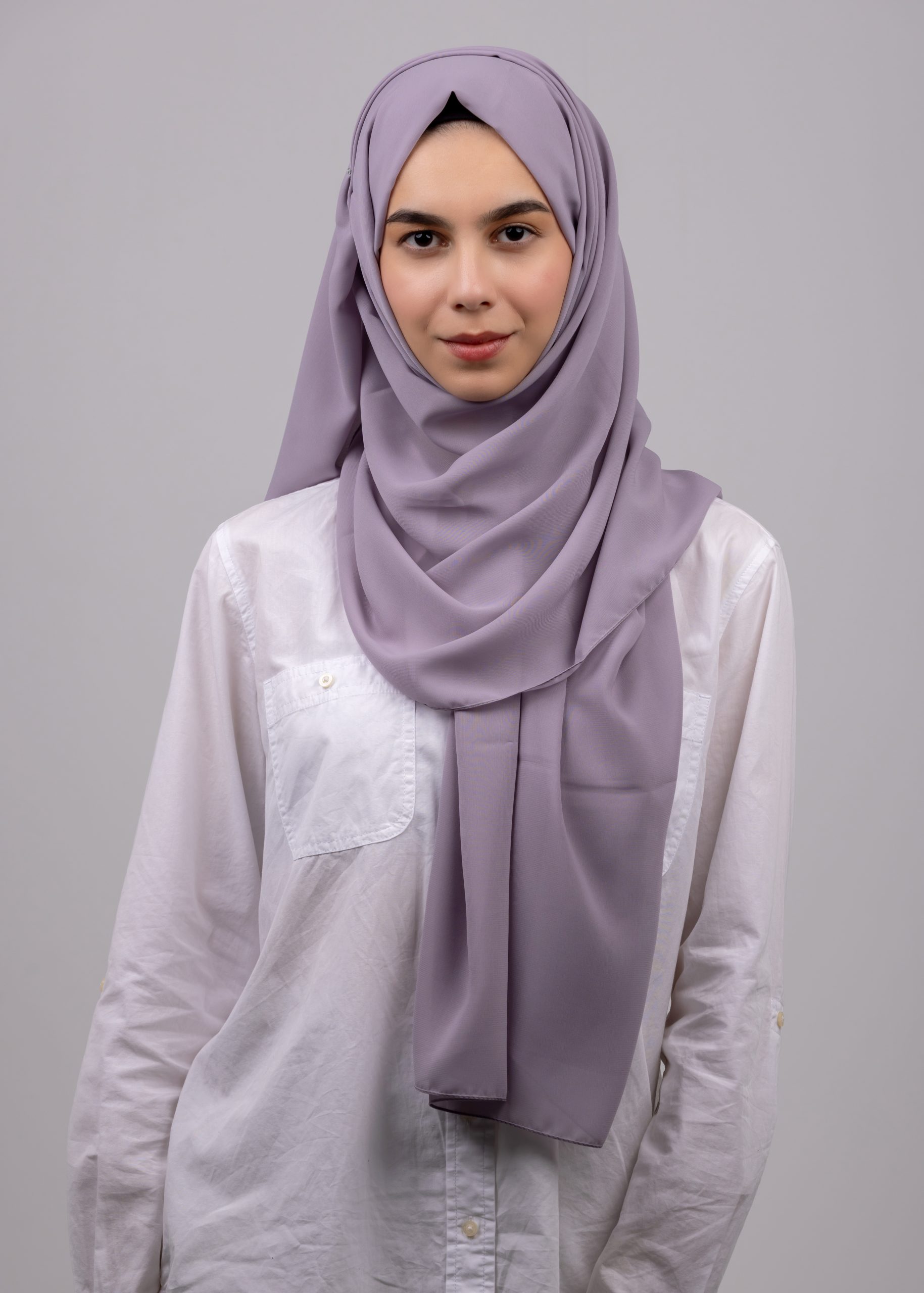 The soft chiffon hijab is great for everyday casual wear. Designed for comfort and versatility, the yarns used for this fabric make it low-crease, flowy, and effortlessly stylish for any occasion. Your go-to for graceful, hassle-free wear.