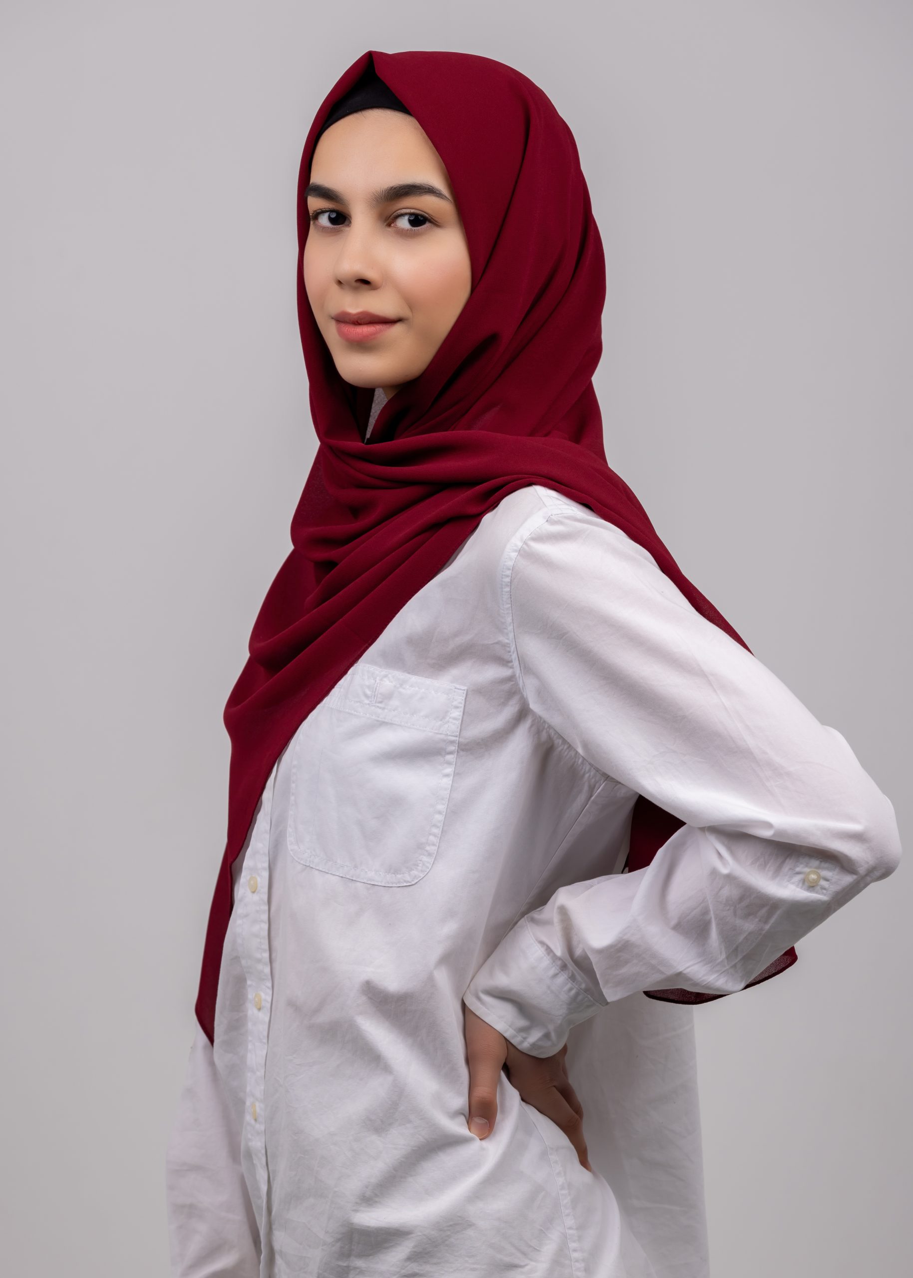 The textured chiffon hijab is great for those who love giving a pointed look to the hijab and prefer a voluminous drape. Your go-to for an elegant hijab look.