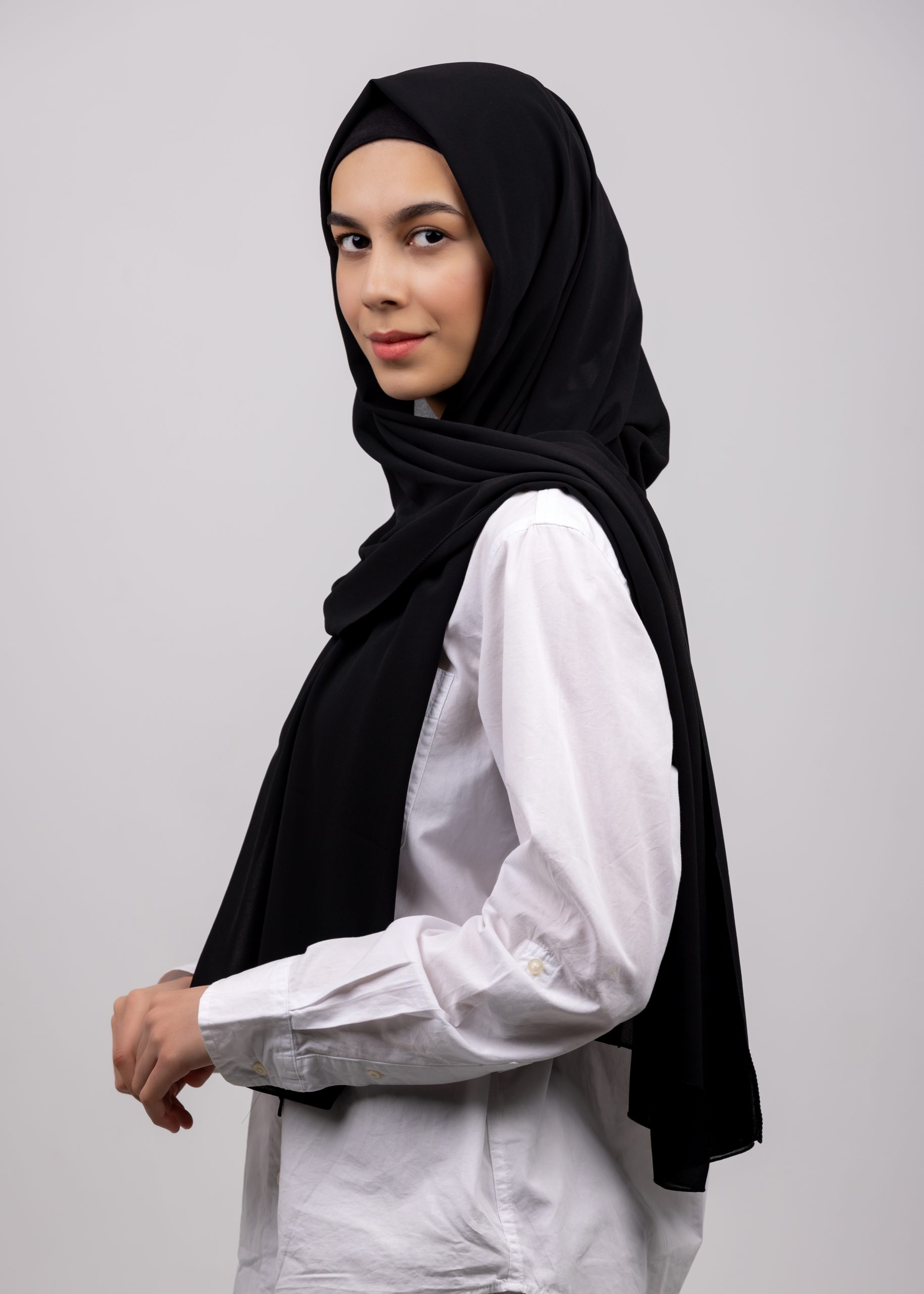 The textured chiffon hijab is great for those who love giving a pointed look to the hijab and prefer a voluminous drape. Your go-to for an elegant hijab look.