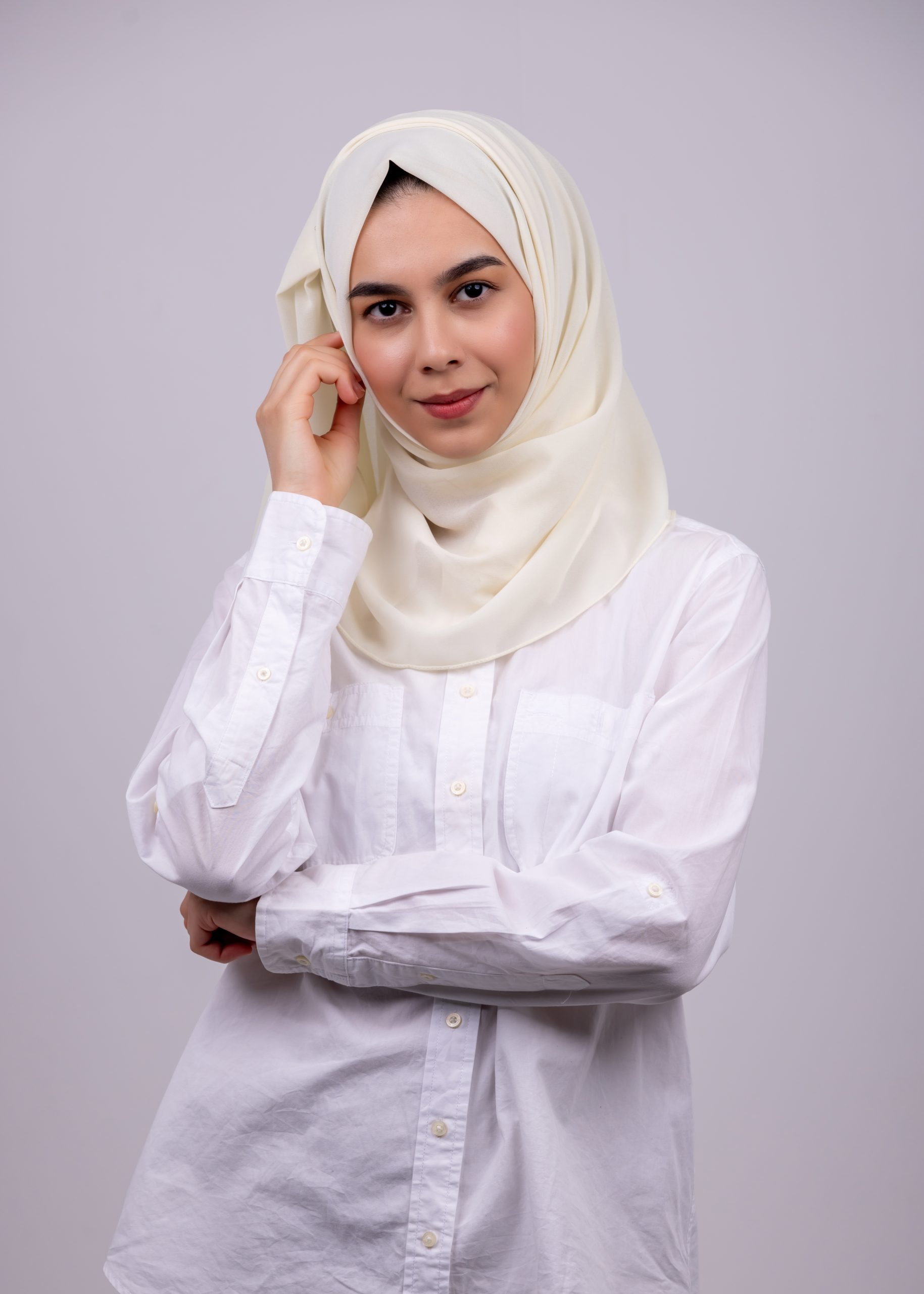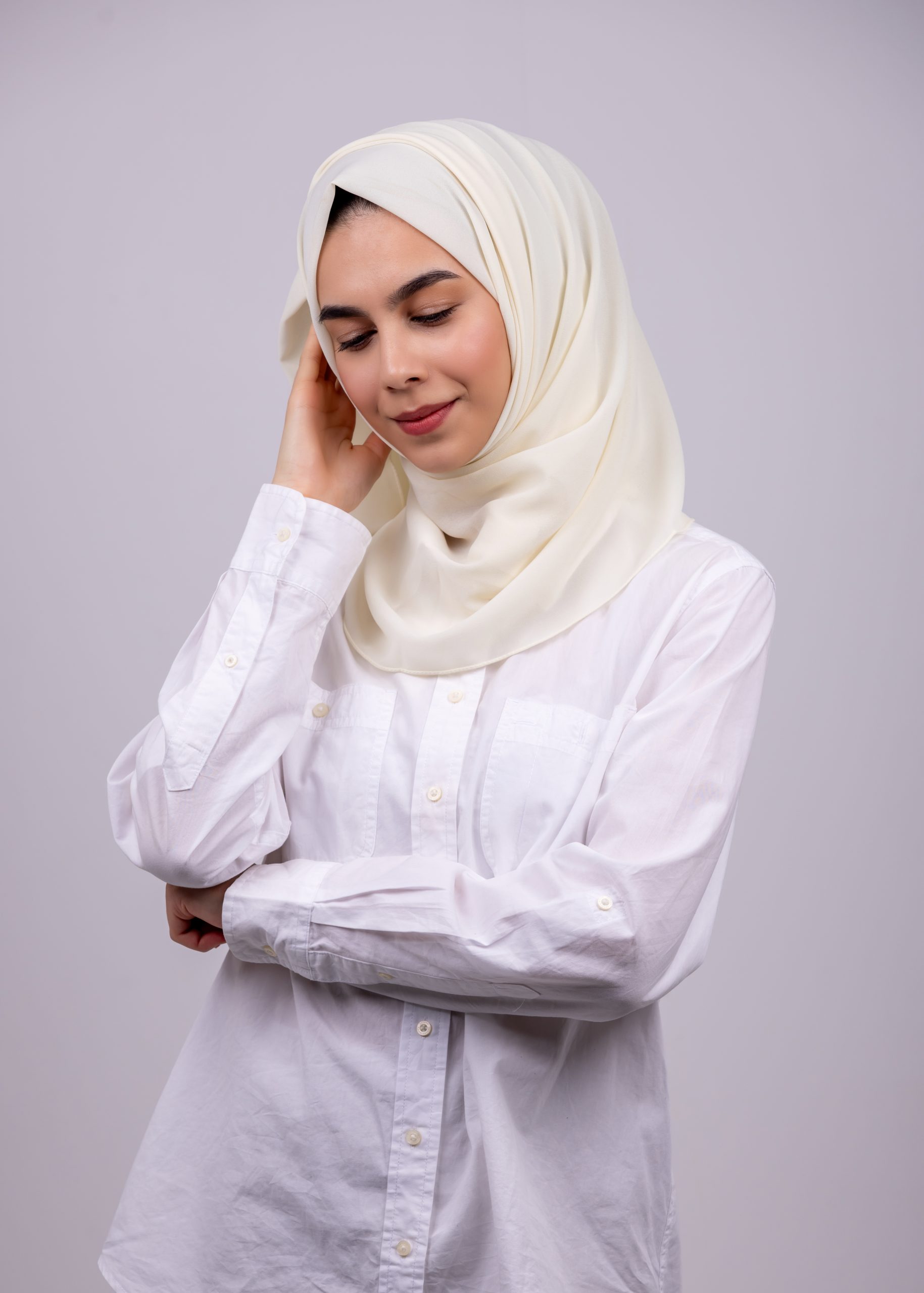 The textured chiffon hijab is great for those who love giving a pointed look to the hijab and prefer a voluminous drape. Your go-to for an elegant hijab look.